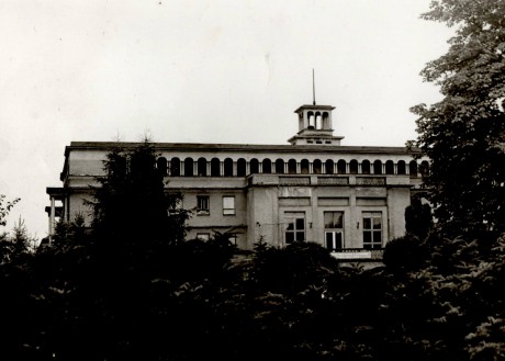 Budova Poľnohospodárskej strednej technickej školy, neskôr SOUp, potom Okresného úradu v súčasnosti na prenájom. Nedatované. Podľa vzrastu stromov v parku pred budovou odhadujem koniec 70-tych rokov až prvá polovica 80-tych rokov. Foto: archív administrát